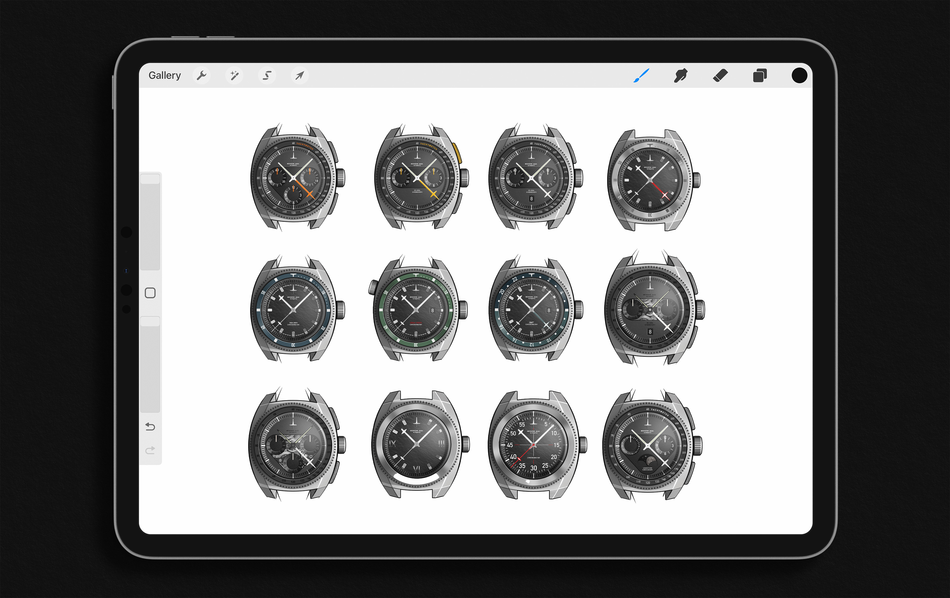 A digital watch collection. My goal, when our client envisioned an NFT line, was to bring the world of automatic watches into the digital realm.